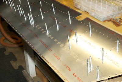 After attaching the skin to the rear spar you back rivet the skin to the rib halves.