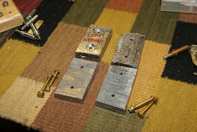 The last step is to add the counterweights to the counterbalance arm. The kit comes with four identical weights and you have to cut them down to fit. I was able to do it easily on the band saw.