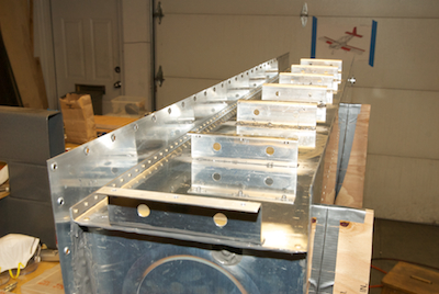Including mixing and clean up, each baffle install took three hours. There was no extra time for pictures so the process is not documented. These pictures show the rear baffle area after installing the baffle and the mounting z brackets. I just followed the steps in the manual and it seems to have worked out OK. The tanks are now curing so they haven’t been tested yet, but I feel pretty confident they will be sealed tight. We shall see. In the meantime, I went ahead and colored them in as completed on my airplane progress indicator. Worst case is some rework. |