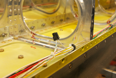 One of the things Van’s has said about this kit is that they want to make it as complete as possible including wiring. The wing kit comes with wire looms for the lights, ADAHR and autopilot servo pre made. All you have to do is run the wires. One end of the wire loom has the molex connector installed. The other end of the wires are attached to pins but you run them and then insert the pins into empty connectors. |