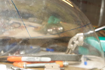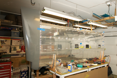 I also fit the wing tip as I did before with the outboard skin only clecoed in place. It works fine to do it that way. The bottom pictures show the lens blank and the final fitted lens in place.