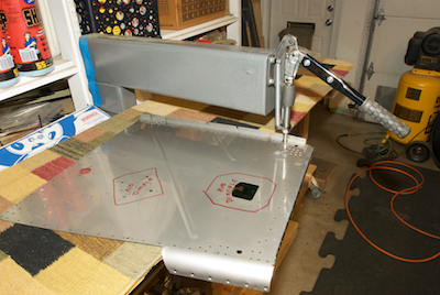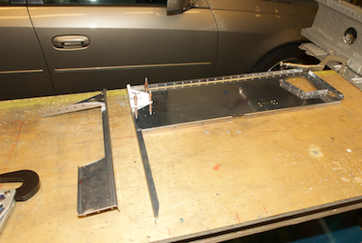 The forward side of the fuselage will attach the firewall to the forward main spar via the floors and exhaust/utility tunnel. The exhaust/utility tunnel is made up of two parts, a stainless steel inner tunnel that is an extension of the stainless steel firewall and an outer aluminum tunnel that encloses it and a space for fuel, rudder cables and electrical runs. The first two pictures show the aluminum outer tunnel walls and some pieces that attach to it or the firewall. The last two pictures show the lower right firewall piece being dimpled. |