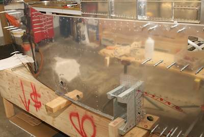 Since this is as far as I got before the holidays, I clecoed in place a lot of pieces yet to add so visitors could get a sense of what it would all look like.