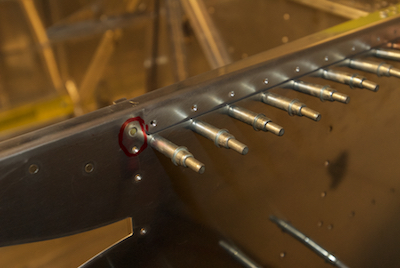 After the holidays I removed all of that stuff and riveted up the front end. There is more sealant that has to be applied. It hasn’t been cleaned up yet in the third picture. The last picture is a preview of what is yet to come. After a few odds and ends are cleaned up, the aft fuselage is ready to mate to the forward section. My kids helped me get it down from where my wife and I had hung it up. It just needs to be slipped into place. |