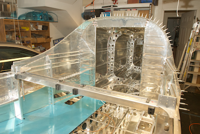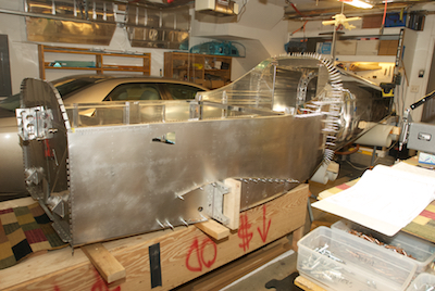 Special six image page! The first picture shows some of the odds and ends needed to clean up. There are four angles that I hadn’t noticed in the plans all the times I had looked through them. Simple. Then I needed a bucking buddy to finish off the forward row of bottom rivets in the fuselage. Ron came in to help. I was laying on the floor. Next up, join the two sections. That was the other task Ron came down to help with and we got it done. It mostly went smooth with just a couple of trivial issues. The rest of the pictures are just some views after we got the three bulkheads in place. Very satisfying day. |