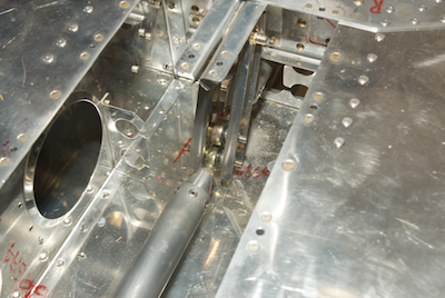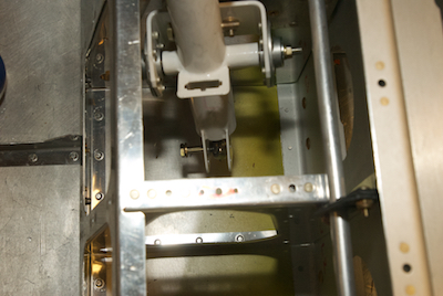 The first two pictures show the middle push rod and the forward push rod attachments. The last two picture chronicle the installation of the sticks. Some of these bolts are very hard to get to. In picture three you see a bolt that is used to connect a push rod that joins the two control sticks. I needed to install a special steel washer but could not hold it in place. I got a numbered drill with the same diameter as the thickness of the washer and superglued them together. Then I inserted the washer and when the bolt was in place, just snapped the drill bit off. Worked like a charm. |