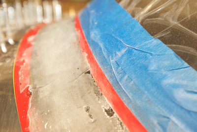 Picture one shows the first step done. No sanding yet. Picture one is after the first pass at sanding to the finished shape. It is not easy to see from the picture but there are easily visible slight low spots. Per the instructions you just go back and add some glass and fill them in. Not hard at all. Picture three is after all the low spots appear to be filled. You then give it a good shiny coat of epoxy without and glass. You sand that down to a nice even finish and there should be no low spots remaining. |