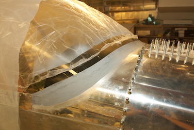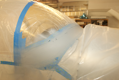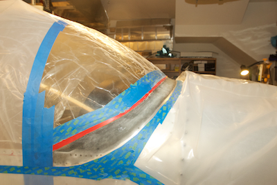 The final rough sanding has been completed in the first picture and I am about to apply a filler primer. Filler primer has some body to it and it will fill in any sanding scratches etc. You then sand the filler primmer with fine sand paper. I gave it two coats and the result is the last picture. It is very smooth and makes a smooth transition to the skin. I took the canopy off at this point and it is now sitting off to the side and won’t go back on for awhile. |