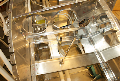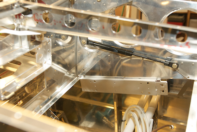 The next things to mount are all the remote boxes. These don’t require a front end on the panel or can be operated via the G3X Primary Flight Display (PFD). This is where I decided to mount the remote transponder. It mounts in a tray and I put the tray under the channel I added shown in picture one. This is an old piece of scrap from my Sonex. One side of the tray will attach to it and the other side to the rib next to it. It is clamped in position in the second picture. You can see it from the side in the third picture. The last picture shows it peeking out above the rudder pedals. It slides in and out no problem. |