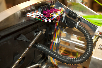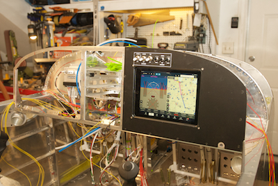 In the last set of pictures, the instruments and switches were not wired in and working. I took the panels all out and started final wiring of the iPad side of the panel. Pictures two and three show the final wiring behind the panel for the lights and iPad. The black tube in the pictures is for cooling air from a small fan. It keeps the iPad - which can overheat - cool. I had problems with it after I installed it. It turns out that the port on the back of the fan that the tube connects to has some play and when attaching the tube it impinged on the impeller and the fan wouldn’t rotate. While taking it all apart to fix, the very thin wire leads that if came with broke off. The last picture shows new heavier leads attached. |
