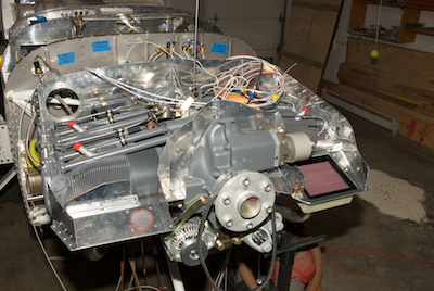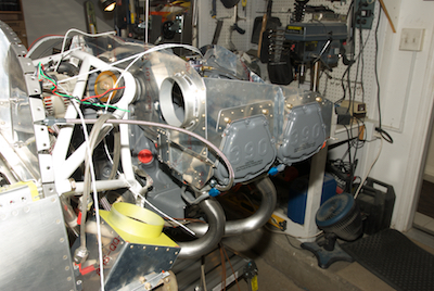 The front baffles get RTV applied as well as shown in the first picture. I have friend who is nearly finished with an RV-10 and an engine he bought used. He has regaled us with the story about how difficult it turned out to be to fit his baffles. Picture two shows the entire extent to the modifications I had to make to the stock RV-14 baffles for the io-390. I had to trim that one tab back to the blue lines. As a group we have teased him about his baffles vs mine while showing him this picture. The baffles have been mostly installed in the last two pictures. I have not installed the rubber seals that attach to the baffle tops yet because I am doing them out of order and have not fitted the cowl yet. |