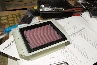 In the last picture you can see a filter that sits in an opening in the baffle. the first three pictures show the preparation of the filter mount that will form part of the induction system.
