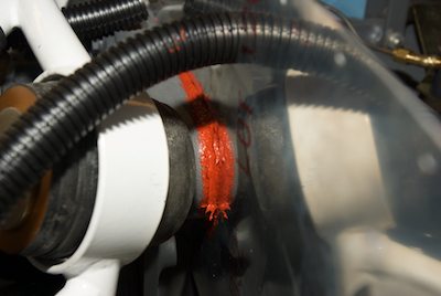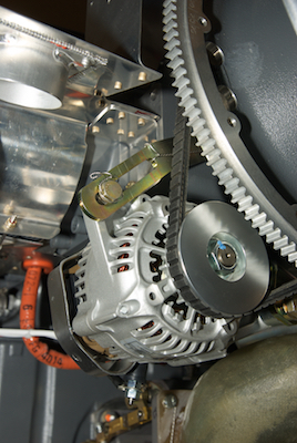 With the prop on, I could attach the belt to the alternator and set the belt tension. It is really easy. I applied some pressure and then tightened the alternator down and measured the slip torque of the alternator pulley on the belt. My first try came in at about half of what is needed. I made a mark at the bolt location and then loosened the alternator and leveraged it down past the mark until I thought I might have it and tightened up the alternator again. When I measured the slip torque it was dead on. Ever since the alternator was attached I was afraid that I would forget to have the belt around the prop hub when installing the propellor. If you do, you have to take the prop off to install the belt. I know people who have done this and it seemed very possible I could have too, but I didn’t. As I was now starting to route wires in and around the baffles, I also started to get at the accessible areas of the baffles that would need sealing with RTV. That is being shown in the last two pictures. |
